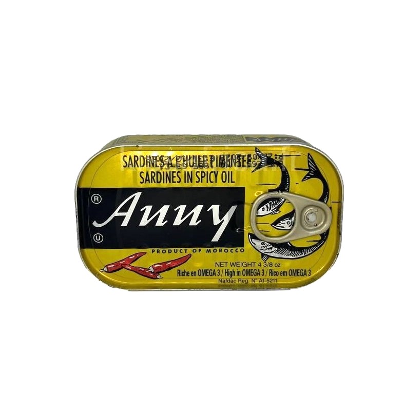 Boîte de Sardines à l’Huile Pimentée Anny 125g , disponible en 1, 3, 5 ou 10 boîtes